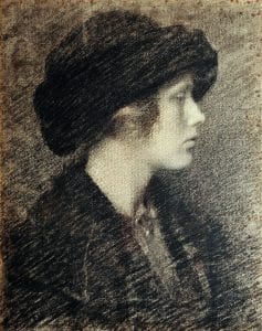Gotch’s The Black Hat, a charcoal study from 1912, was probably the first artwork that Pierce chose to add to Kettering’s art collection. We know from handwritten letters in the Gallery’s archives that Pierce wrote to Gotch when she became curator in 1917, keen to include his artwork in the Gallery and asking his thoughts on the frame. Gotch presented The Black Hat to Pierce, and we still hold this artwork in the collection today.