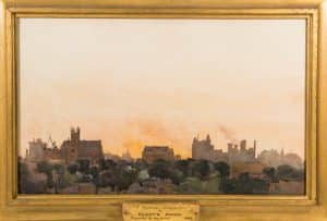 When the exhibition closed, Owen was impressed by Pierce’s curation and keen to show her gratitude. She offered one of her works as a gift to the Gallery, and asked Pierce to choose whichever one she liked. “The one that I prefer is a watercolour of Sydney Harbour”, Pierce wrote. That painting was A Sydney Silhouette which has been held in Kettering’s art collection ever since.