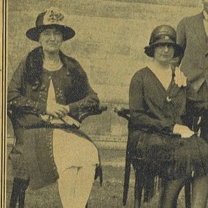 Pierce (left) and Owen, seated outside Alfred East Gallery in 1928